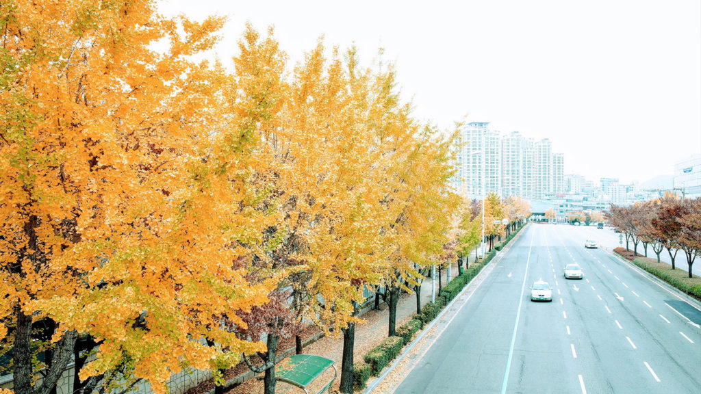 昨日に続いて、今日も街の彩りです。毎年のことですが、大通りの並木道はすっかり黄色に染まってきました。 -